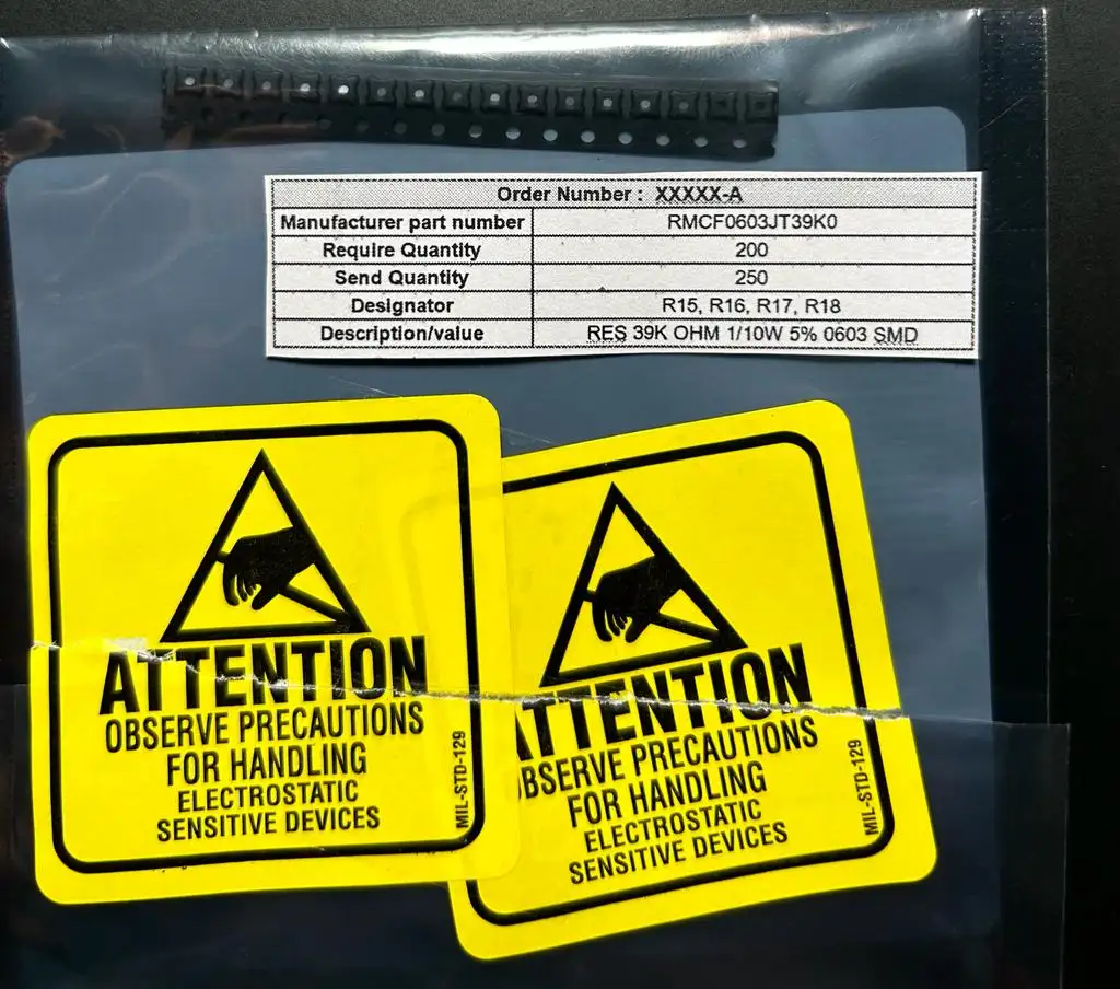 - Pack each designator separately: Keep different designators in separate ESD bags to prevent confusion and errors during assembly.